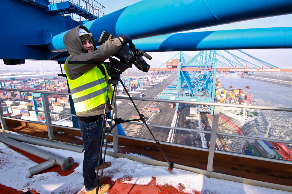 Letztens kamen wir recht hoch hinaus mit der HHLA! Wetter war auch traumhaft, trotz Winter und Hamburg. So soll ein Drehtag sein.